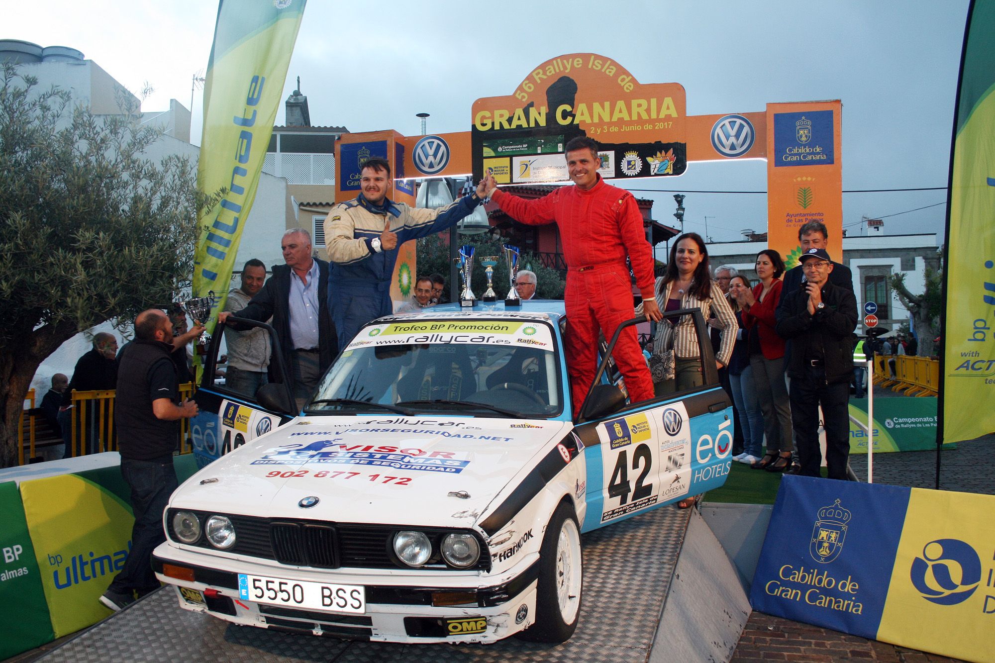 En el Trofeo BP de Promoción de Las Palmas, magnífica lucha la mantenida entre Alejandro Falcón-Exequiel Valdivia (BMW 325i) (fotografía superior) y Pablo Medina-Aythami de la Guardia (Hyundai Getz), ambos alternándose en el liderato del Trofeo desde el cuarto tramo, hasta que en el TC8 Medina-De la Guardia sufrían una triste avería en el pequeño Hyundai y dejaban a Falcón-Valdivia el camino expedito para la victoria en el último tramo. La segunda posición posición del trofeo era para Victor Valido-Jonay González (Nissan Micra), concluyendo terceros Miguel Fernández-Iván Morales (Toyota Starlet). Por su parte, Domingo Ramos-Marcos Guerra sacaban la mayor renta de puntos de cara al Volante BP-FALP 2017.