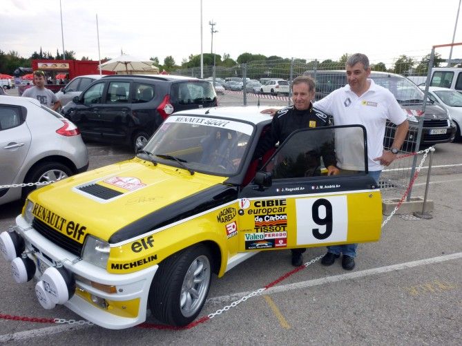 El piloto estrella de Renault, Jean Ragnotti, acudió con su habitual simpatía a saludar a los coleccionistas por la tarde, firmando autógrafos, coches, piezas… y haciéndose fotos con todos. Ragnotti realizó diversas actuaciones espectaculares sobre la pista con el potente R5 Maxi Turbo.