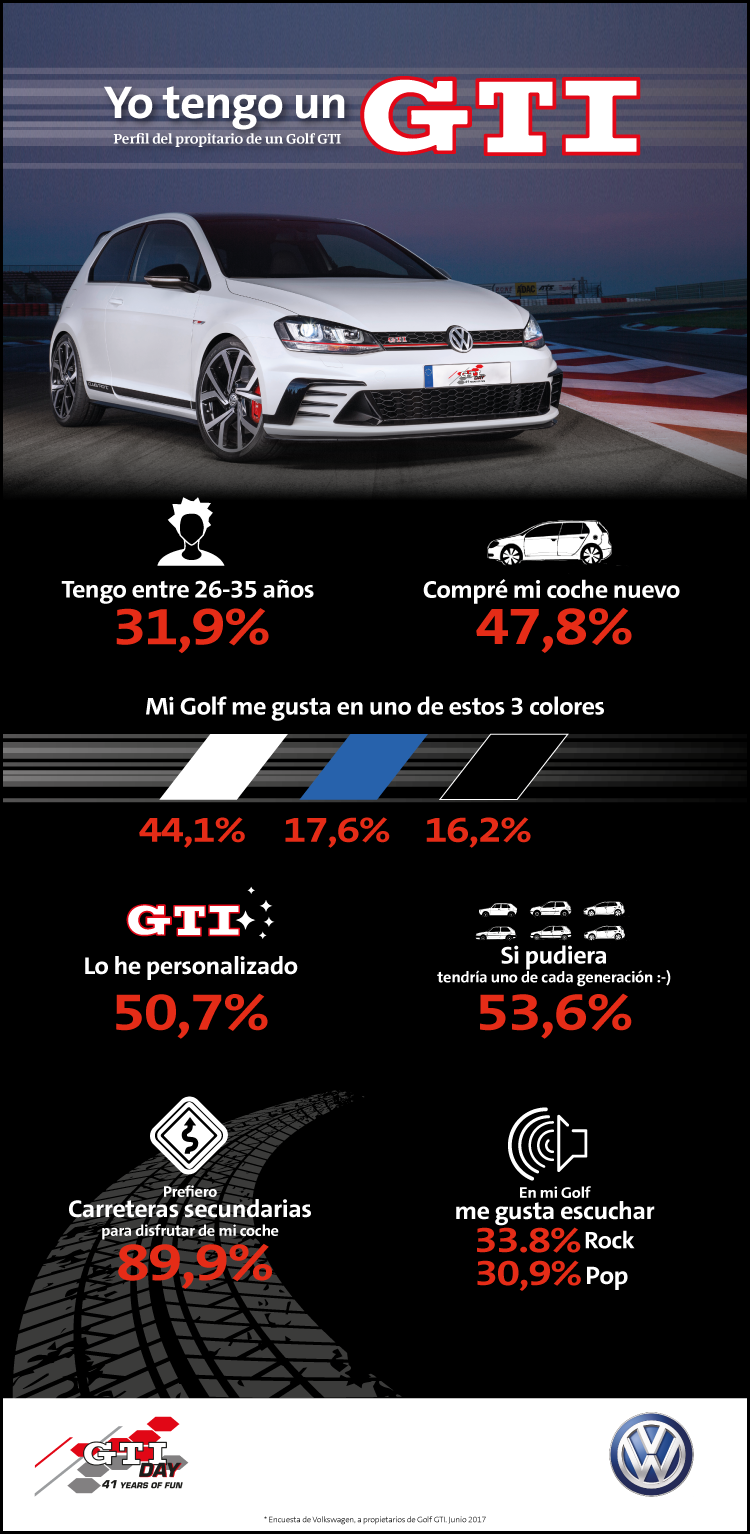 7.7.2017.- Volkswagen ha realizado una encuesta para conocer cómo son los dueños de los GTI, cómo cuidan sus coches y qué cosas les gusta más hacer con ellos. Los resultados muestran a personas entusiastas no solo del coche sino también de la marca.