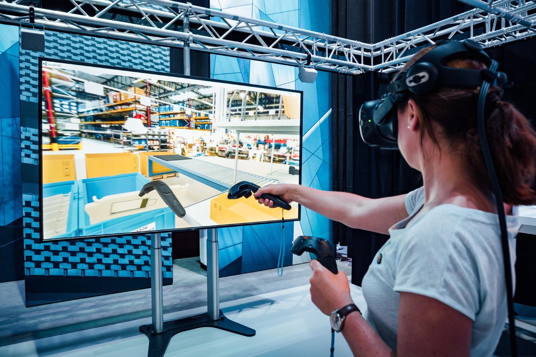 Cuando los empleados se colocan las gafas VR de realidad virtual, ven una simulación realista de su puesto de trabajo en el Hall L del Centro Logístico de Ingolstadt. También tienen un controlador en cada mano como los que se utilizan para los videojuegos, con los que pueden captar y mover las imágenes virtuales de sus equipos de trabajo, como contenedores o componentes. Preparación de cajas, aplicación de etiquetas… Paso a paso, los empleados se mueven por los diversos procesos de embalaje, tal y como sucedería en la realidad. Aprenden los movimientos requeridos mientras que se familiarizan con los programas informáticos correspondientes. Debido a que esto ya no requiere componentes y contenedores reales, el entrenamiento se puede lograr con flexibilidad en cualquier lugar, con el consiguiente ahorro de espacio, tiempo y dinero.