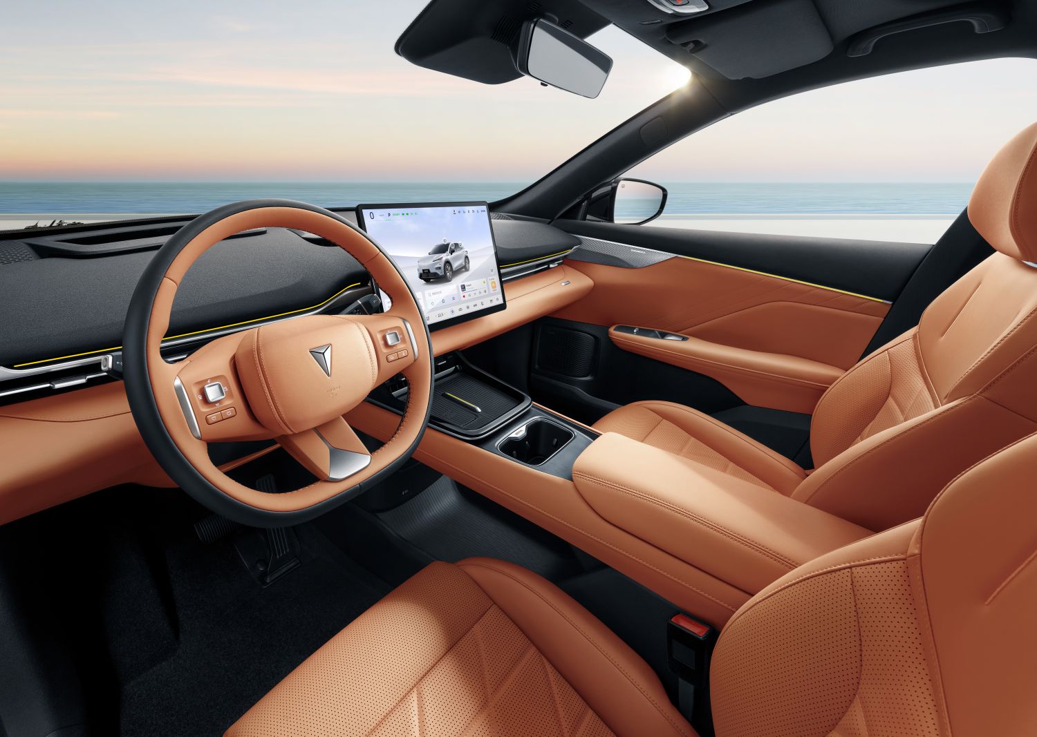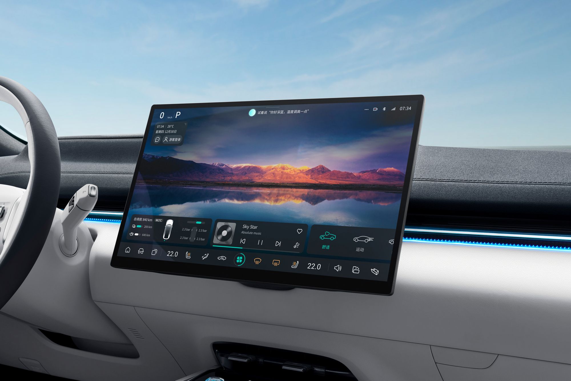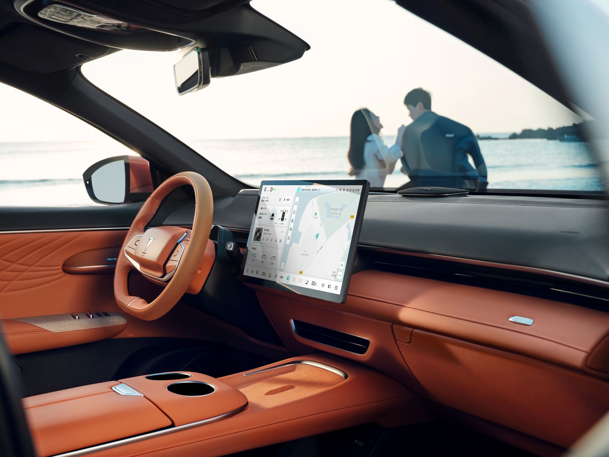 Su interior incorpora una pantalla central giratoria de 15,6 pulgadas, head-up display con realidad aumentada, techo panorámico de cristal de serie, asistente de voz inteligente, carga inalámbrica para smartphones y un completo equipamiento de confort. Los sistemas avanzados de asistencia a la conducción y seguridad también se incluyen de serie.