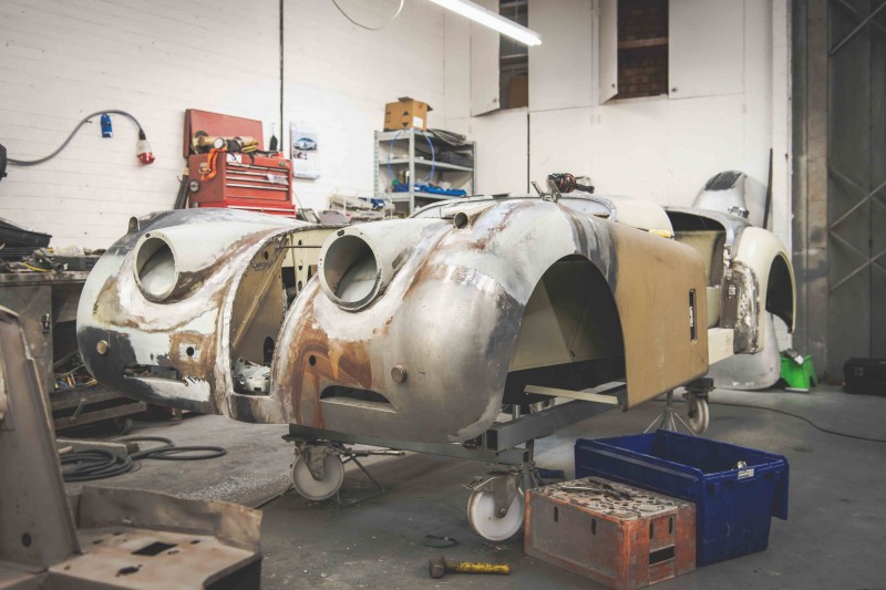 El vehículo original, descubierto debajo de un arbusto en California, EE. UU., se registró en 1954 como un modelo de conducción izquierda estándar. Se llevó a Reino Unido para que el equipo de Jaguar Classic de Warwickshire, Reino Unido, lo restaurase siguiendo las especificaciones de David.