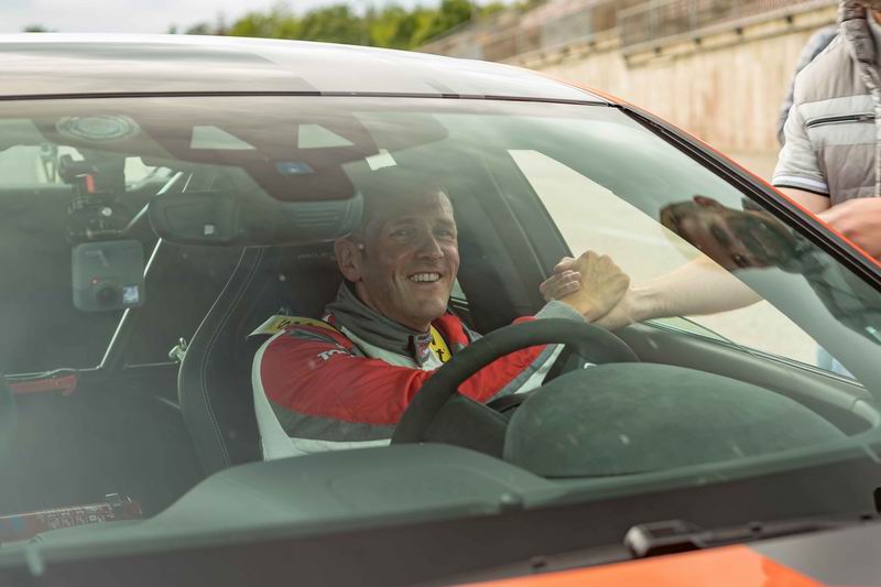 Al volante de este Project 8 con especificación Track Pack biplaza en su regreso al legendario circuito alemán estaba el piloto de desarrollo Vincent Radermecker. La suspensión helicoidal de doble muelle regulable se configuró en la altura de desplazamiento «Track» y el splitter frontal ajustable y el refuerzo aerodinámico trasero de fibra de carbono se ajustaron para lograr niveles máximos de agarre y estabilidad.