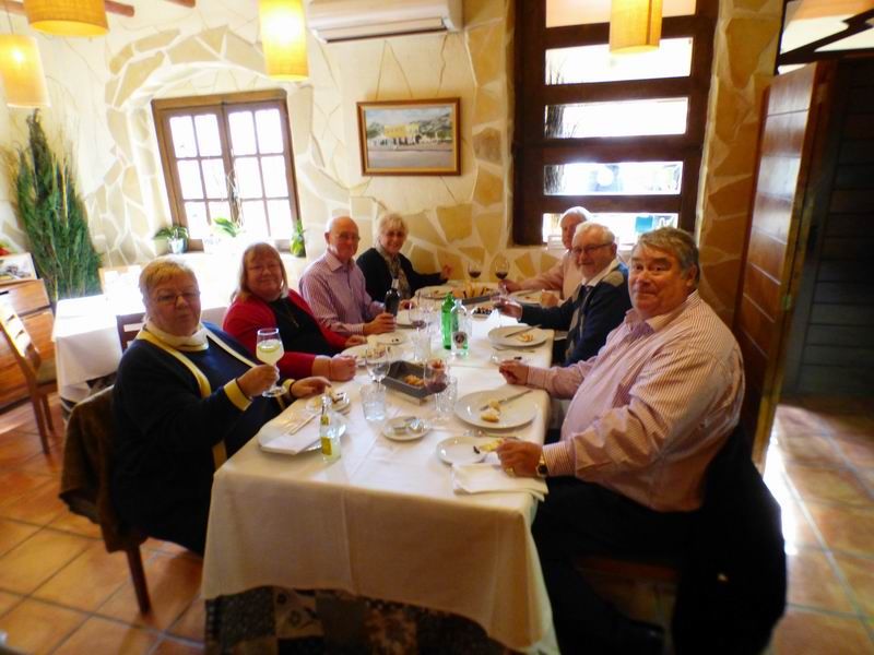 It’s mid winter, yet we had blue skies, beautiful sunshine but it was a touch chilly in the stiff breeze, however, not enough to spoil our day. Many of us started in Sax and drove in convoy through the country side to Pinosso where we had parking reserved outside the restaurant aptly managed by the local police.
