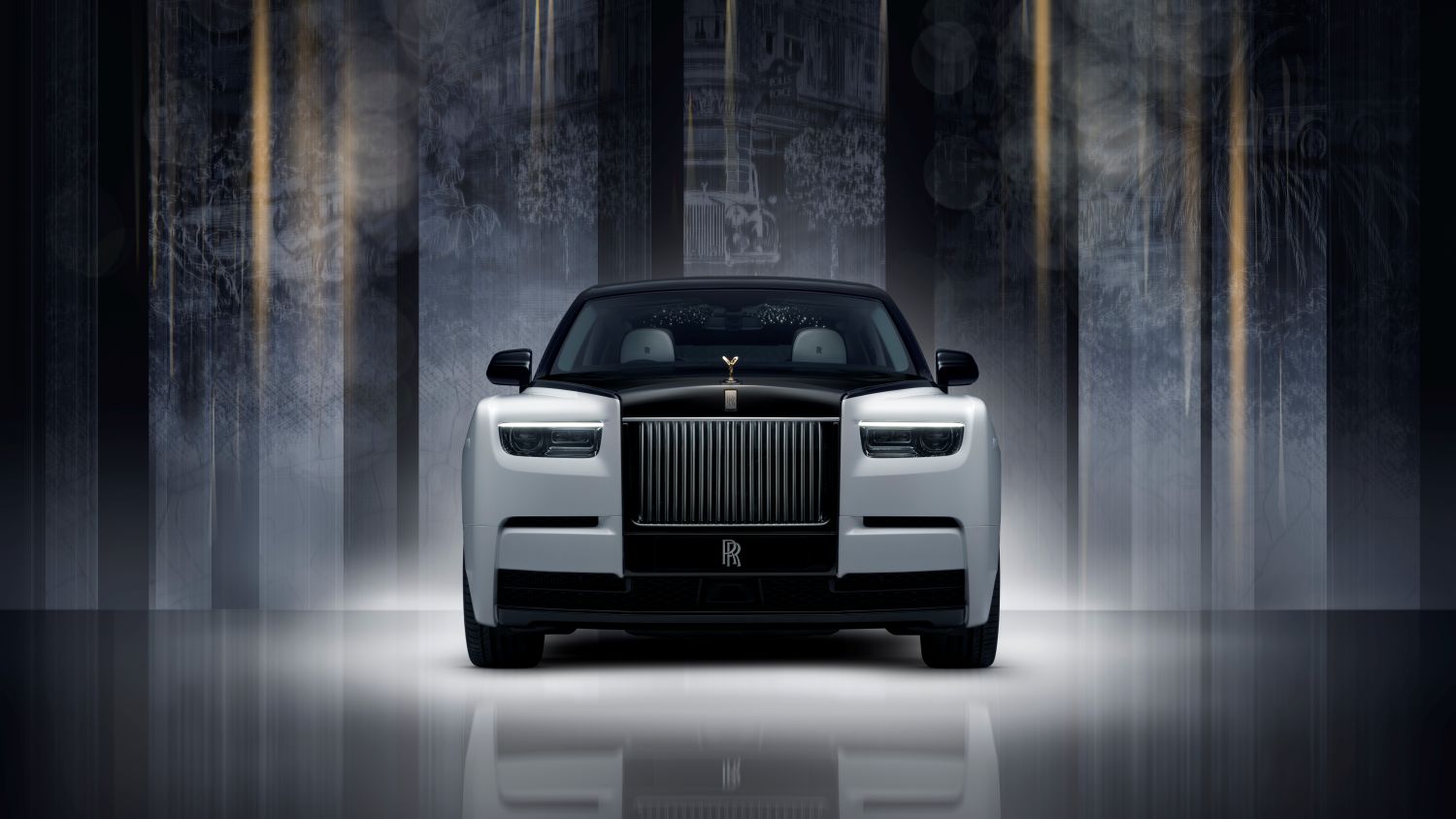 Each historic moment is brought to life through advanced artisanal techniques, many conceived specially for this rare and collectable tribute. Inside, couturier-designed textiles, sketch-like embroidery, laser-etched leather, and groundbreaking woodcraft – including 3D marquetry, gilding, and 3D ink layering – tell Phantom’s story in stunning, intricate detail. Outside, the grille is crowned with a unique Spirit of Ecstasy figurine, reinterpreted from the very first to grace a Phantom, and presented in solid gold to mark this milestone.