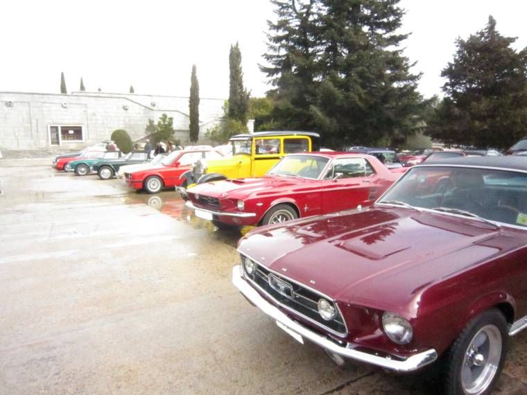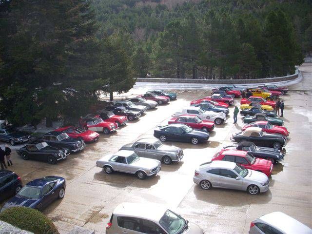 Se dieron cita 43 coches y 82 aficionados en el Valle de los Caídos. Muchos no recordaban la belleza de la vista de la meseta sur desde la falda del monte Abantos. La organización había marcado una ruta hasta Peguerinos por la pista de montaña que atraviesa Abantos. Con acierto decidió suspenderla, pues ni el estado de la calzada, ni la nieve la hacían practicable para nuestros clásicos. Así que accedimos a Peguerinos atravesando El Escorial y por el puesto de la Cruz Verde.