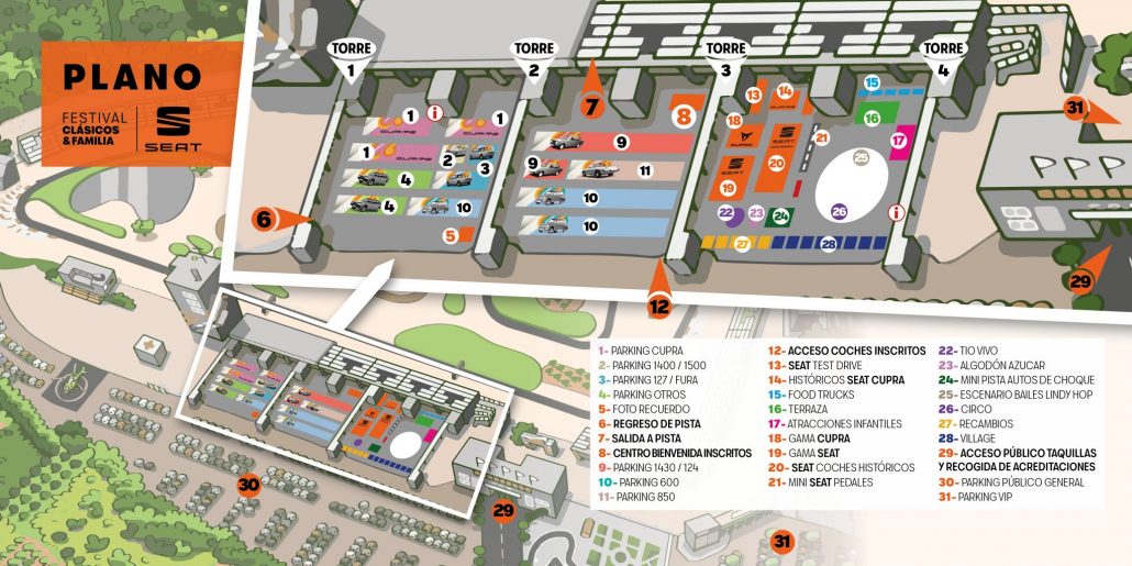 Será un fin de semana para no perderse, lleno de actividades para todos los públicos, con atracciones, un “Village SEAT”, con tiendas sobre la marca y repuestos, food trucks, música en directo, celebración del aniversario, actividades para los más pequeños, talleres de circo…