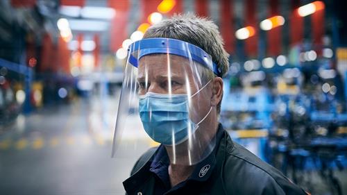 - Requerir que cualquier persona que entre a una instalación de Ford use una mascarilla proporcionada por la compañía, y un protector facial en áreas determinadas de manufactura donde no se pueda cumplir con el distanciamiento social.