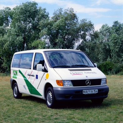 8.7.2021.- Conducir con cero emisiones locales en el interior de las ciudades: los vehículos eléctricos a batería lo hacen posible. Hace 25 años, la furgoneta Vito 108 E sobre la base de la primera generación (W 638) de la Vito fue creada exactamente para este propósito. La compañía presentó la variante electrificada de la Vito en julio de 1996, solo unos meses después del estreno mundial de la versión con motor de combustión fabricada en Vitoria.