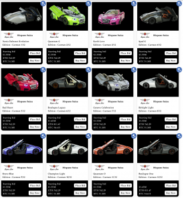 Junto con Trillion Collection, Hispano Suiza ha creado una NFT Collection by Hispano Suiza, una colección de 12 diseños únicos de su modelo Carmen, un vehículo 100% eléctrico que ha permitido a la compañía mostrar su potencial tecnológico, con unas prestaciones sin igual, entre las que destacan sus más de 1.000 caballos y su aceleración de 0 a 100 km/h en tan solo 2,6 segundos. Las doce configuraciones estéticas estarán preestablecidas, por lo que el diseño podrá adaptarse a los gustos de su nuevo propietario.