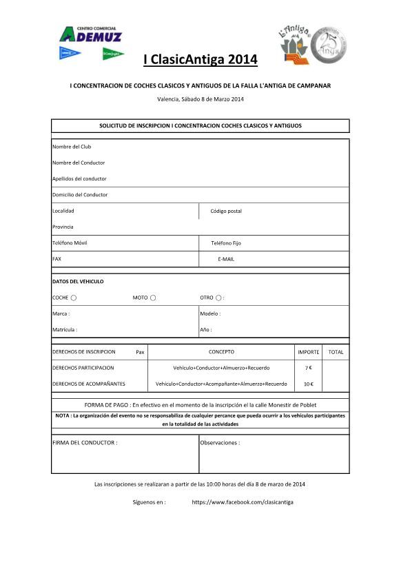 Se ruega confirmación de los vehículos asistentes con el fin de poder estimar el número de vehículos que participarán en el evento. Para ello, pueden remitir cumplimentada a la organización la siguiente ficha: