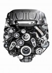El proceso cuenta, además, con la ayuda adicional de una nueva innovación tecnológica que optimiza una vez más la eficiencia de combustión: la orientación precisa de las bujías tanto respecto al inyector como a la cámara de combustión. La relación de compresión también se ha elevado en el motor V8 sobrealimentado, situándose 10,5:1 frente a la anterior cifra de 9,5:1, lo que beneficia nuevamente al consumo y a las emisiones.