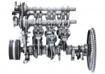 Las propias válvulas están sujetas al control de un sistema de doble distribución variable independiente (DIVCT), activado por los pares positivos y negativos generados por el movimiento de las válvulas de admisión y el escape. Con tasas de actuación superiores a 150 grados por segundo en toda la gama de revoluciones, se optimiza la potencia, el par y el consumo de combustible en todos los regímenes del motor.