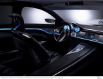 Un quinto sensor, situado en el salpicadero, reacciona a la cercanía de la mano para dejar al descubierto una pantalla de información situada a ras del panel delantero de aluminio. La secuencia continúa con el giro de 90 grados de la sección central del salpicadero, que descubre una avanzada pantalla doble capaz de proyectar dos sistemas distintos a conductor y pasajero a la vez. Por ejemplo, el conductor puede ver instrucciones de navegación por satélite mientras el pasajero contempla una película en DVD.
