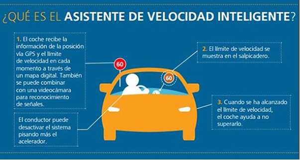 Por lo que respecta a los vehículos, la Unión Europea ha dado un paso adelante al obligar a que todos los vehículos nuevos comercializados en Europa a partir de 2022 incorporen entre otros sistemas de ayuda a la conducción, el limitador inteligente de velocidad ISA que funciona conectado al GPS y dotado de una cámara que lee las señales viales, advierte al conductor cuando éste supera los límites legales.