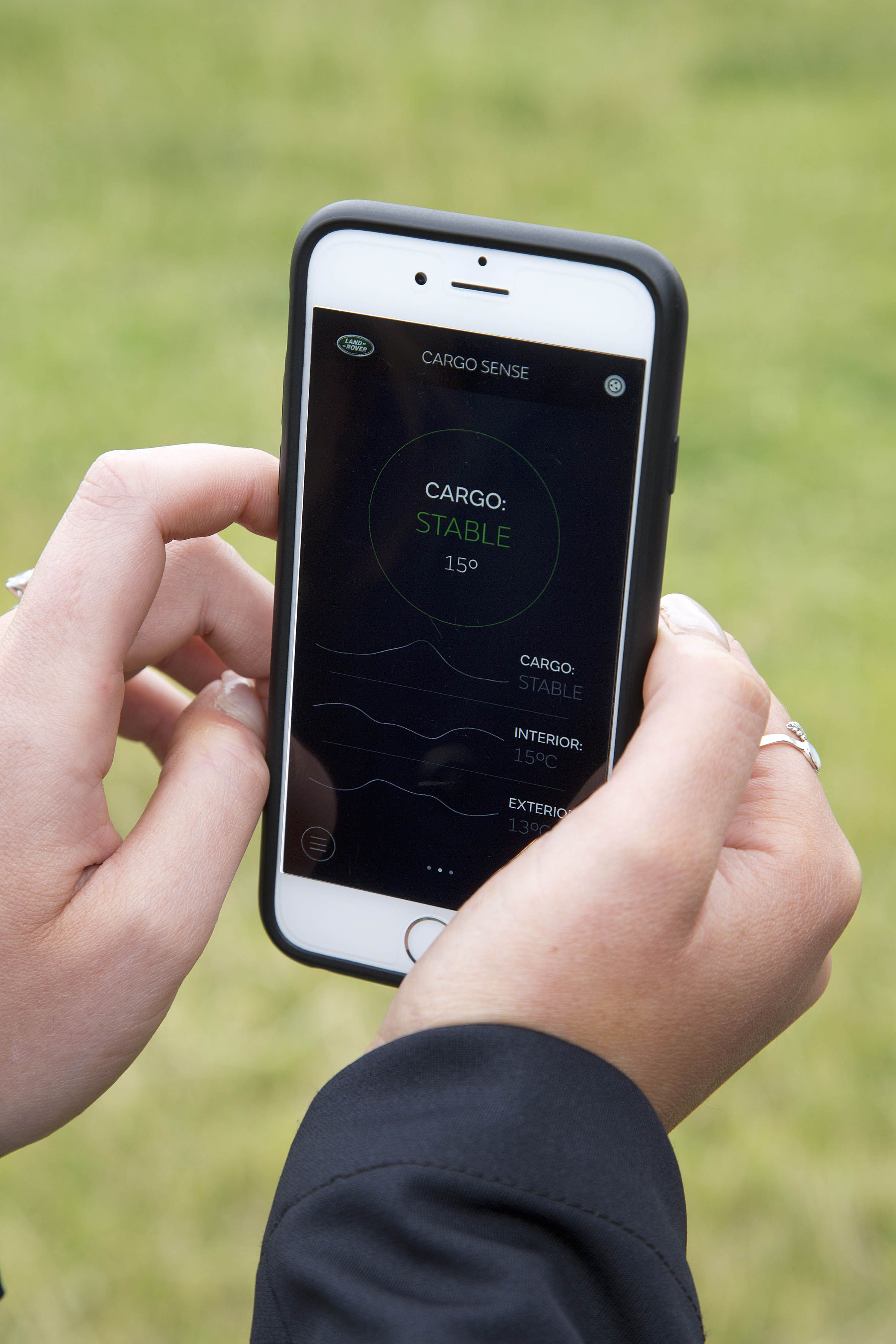 La App de `Cargo Sense´ permite al conductor comprobar a distancia el estado tanto del remolque como de la carga cuando el propietario está lejos del remolque. Si el propietario de un caballo está lejos del remolque en el que se transporta el caballo durante una competición celebrada en el marco de un acontecimiento ecuestre, por ejemplo, el sistema podría alertarlo automáticamente a través de un mensaje SMS en caso de que el caballo estuviera nervioso, si la temperatura interna hubiera superado los niveles de seguridad o si el remolque estuviera siendo forzado.