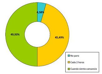 Durante el viaje, los conductores tienen diferentes hábitos a la hora de hacer descansos, pero es alarmante ver que sólo un 49,93% sólo descansa cuando se siente cansado (fotografía de la derecha).