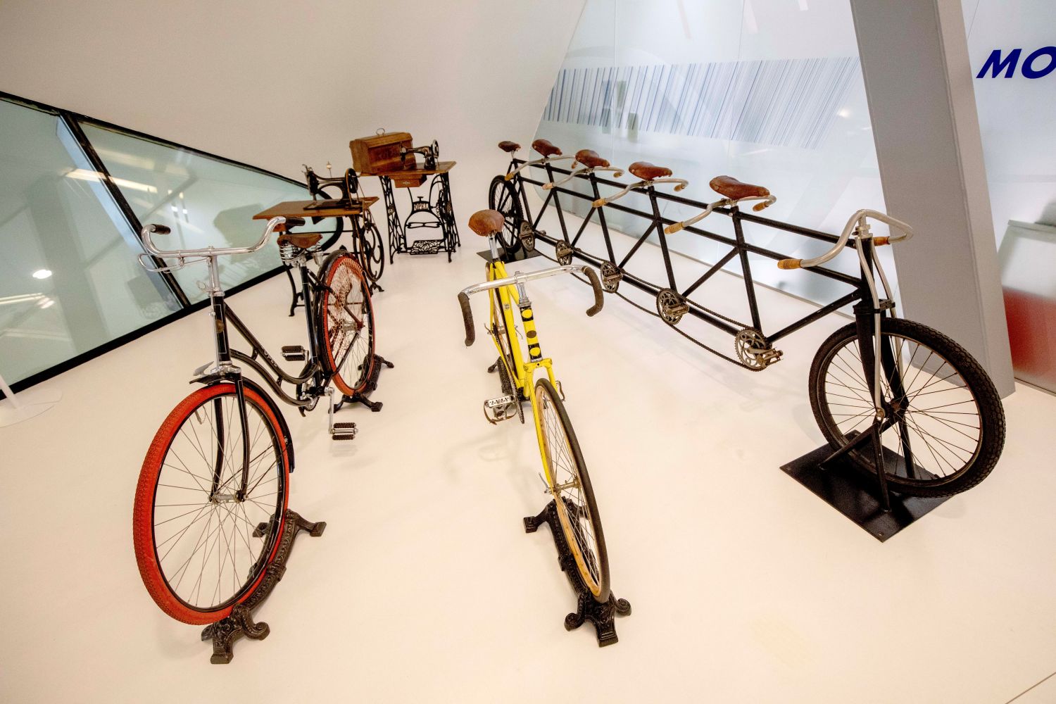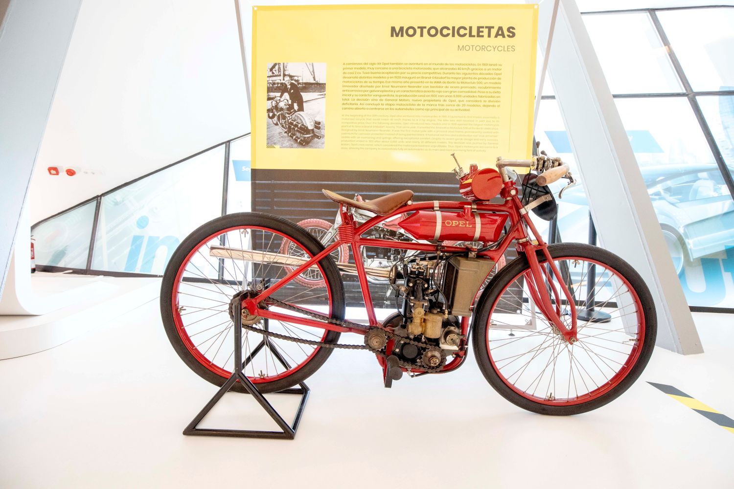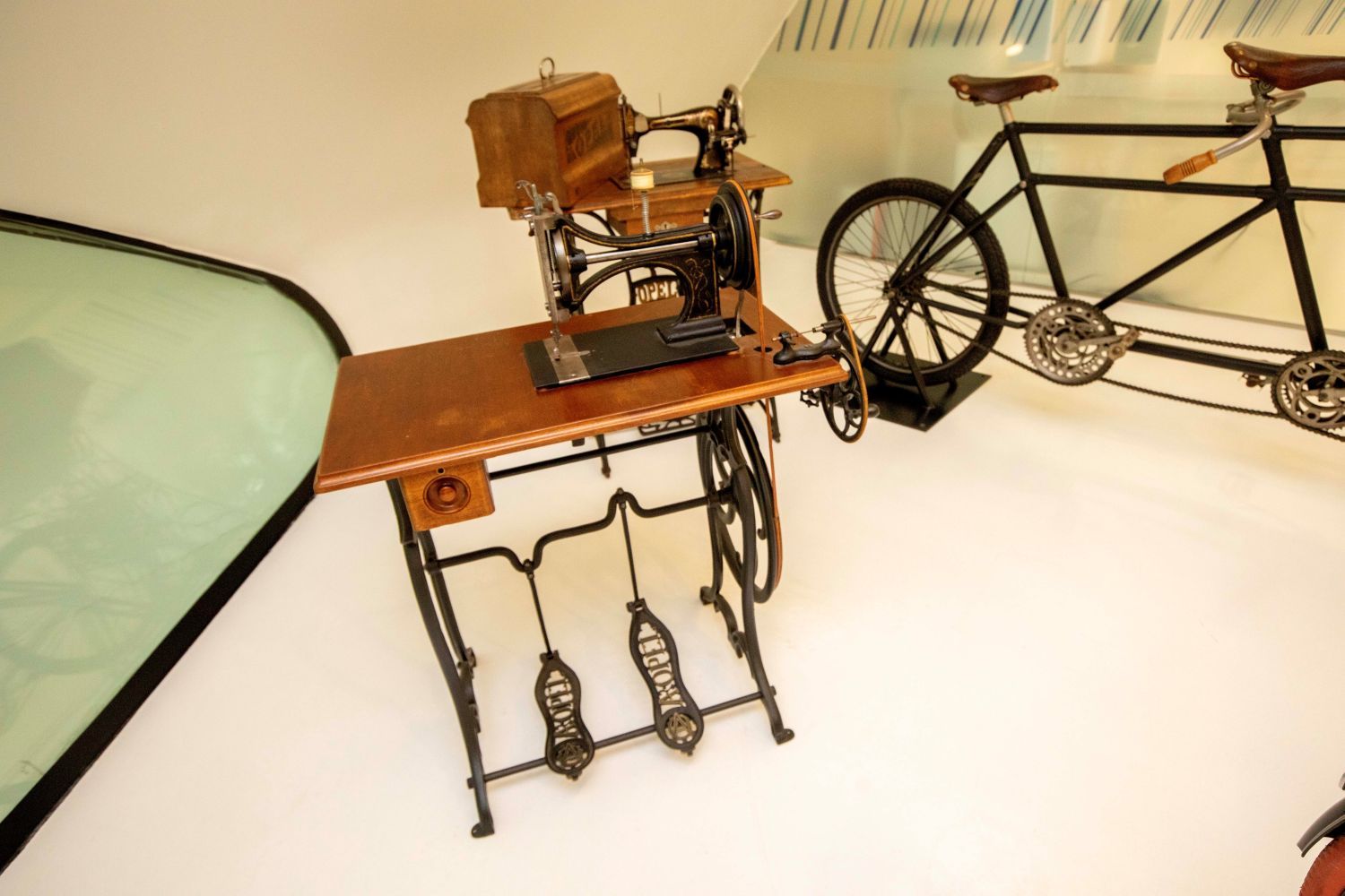 Este afán por innovar sigue la filosofía de Opel desde sus inicios. Fruto del espíritu emprendedor y visionario de Adam Opel, la marca del rayo es hija de la Revolución Industrial, una época llena de innovaciones y de confianza en el progreso que produjo impactos en el día a día que llegan hasta hoy. Por este motivo, el punto de partida cronológico de la muestra no es un automóvil, sino una máquina de coser Type Nº2 de 1870, todo un homenaje a la primera actividad industrial de la firma alemana, que llegó a producir 18.000 unidades al año en 1863. Como reflejo de la vocación innovadora de la marca, también se exhibe una máquina de coser “Vibrating Shuttle” de 1909.