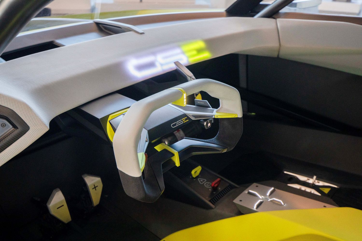 El cockpit también sigue claramente el motivo Opel Compass y permite ponerse en la piel de un piloto de carreras puro. El volante compacto permite una vista directa de la información más importante proyectada en el head-up display. De esta manera, el Corsa GSE Vision Gran Turismo abre perspectivas completamente nuevas en las que el mundo real y el digital se fusionan.