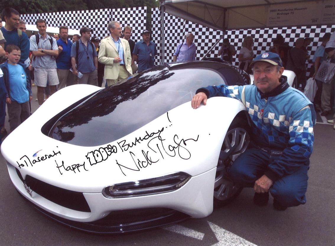 “He sido muy feliz por trabajar con Maserati para hacer un coche ganador. Feliz Cumpleaños. John Surtees.”