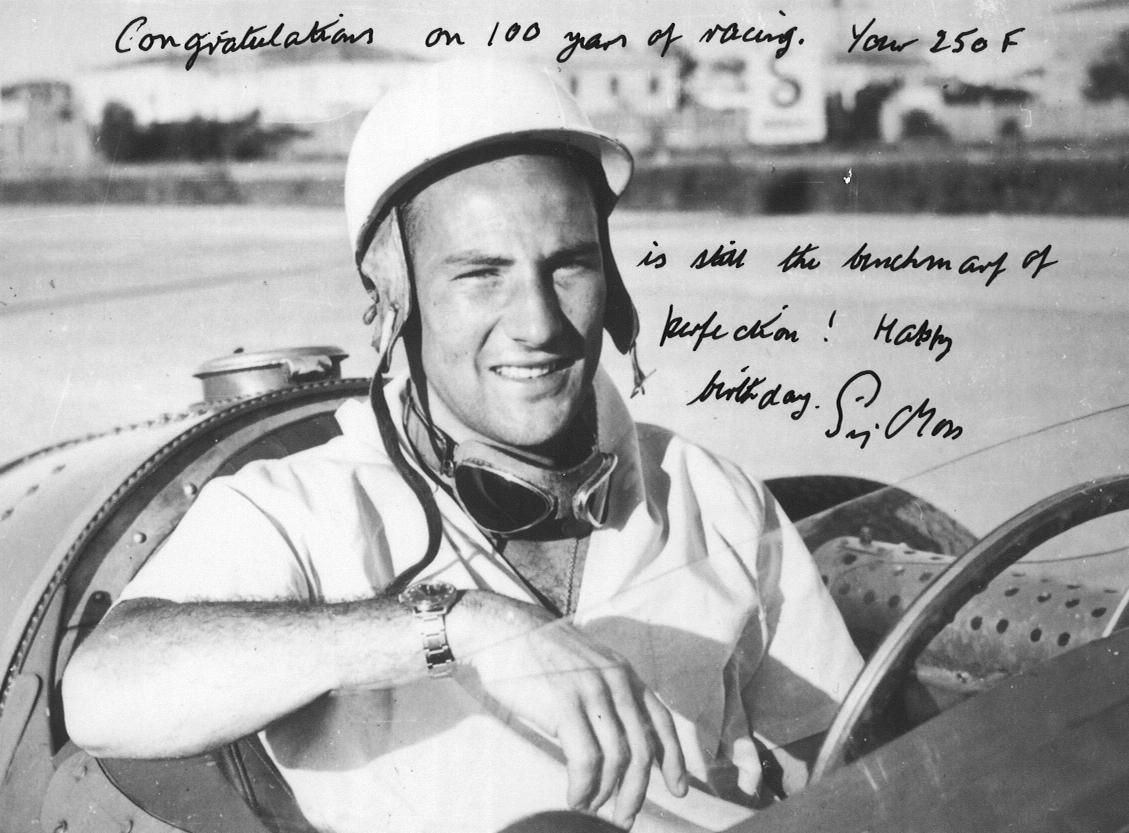 “Felicidades por 100 años de competición. Vuestro 250F sigue siendo la referencia de la perfección! Feliz Cumpleaños. Stirling Moss.”