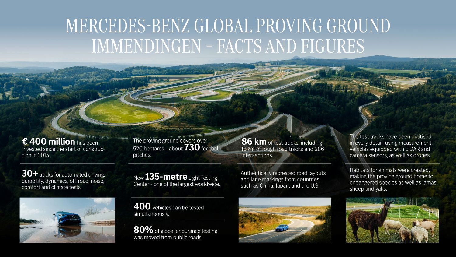 - UN MUNDO DE PRUEBAS EN IMMENDINGEN: MÁS DE 30 MÓDULOS EN 86 KILÓMETROS DE PISTA DE SIMULACIÓN DE CARRETERAS Y MÁS DE 500 HECTÁREAS DE TERRENO