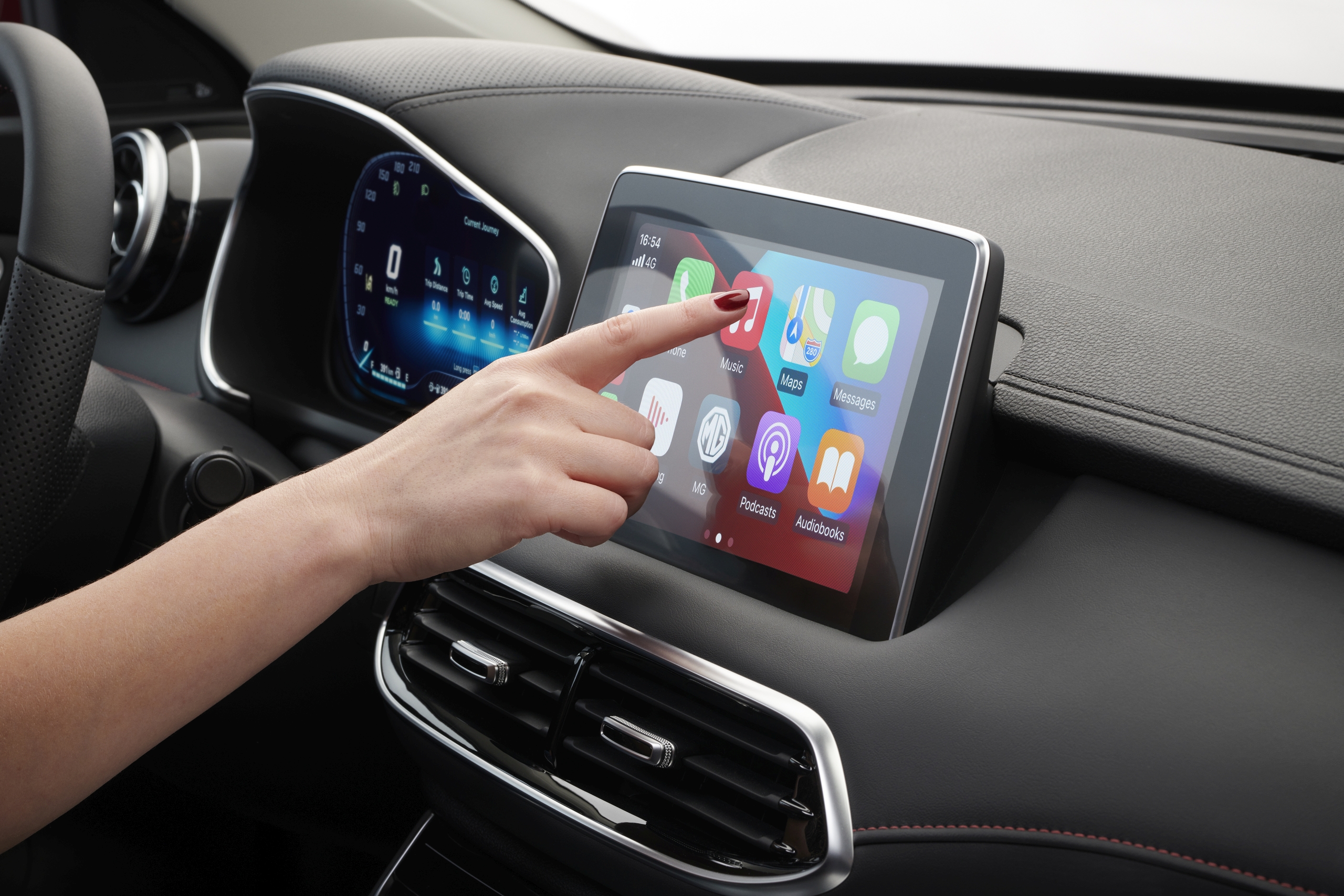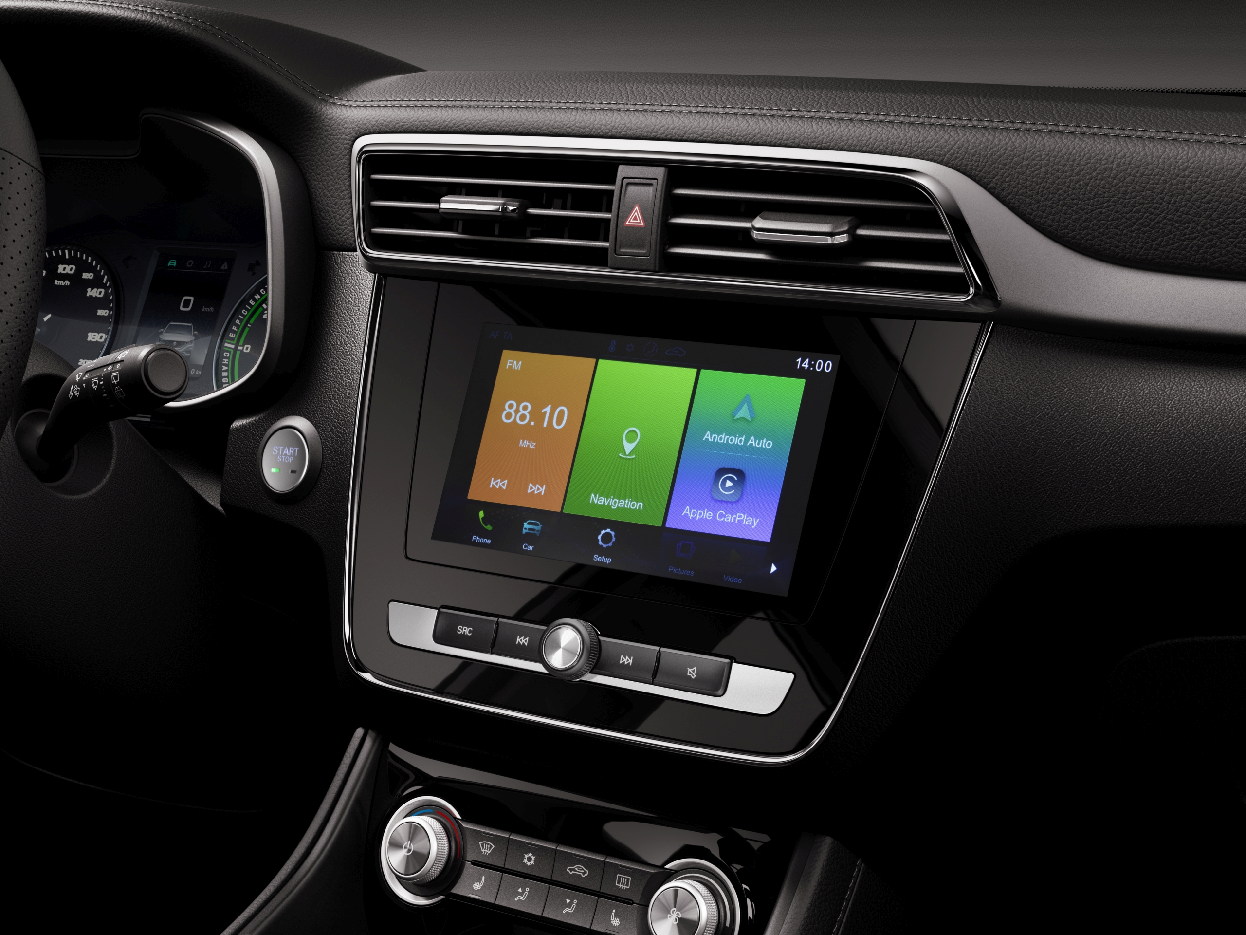 El paquete tecnológico de serie que ofrece MG se completa con un sistema de infoentretenimiento que permite una total conectividad a través de Apple CarPlay y Android Auto. El intuitivo sistema permite controlar todas las conexiones de conectividad y navegación a través de una pantalla táctil a color de 8” que, en el caso del MG ZS EV, viene perfectamente integrada en el panel central de la instrumentación.