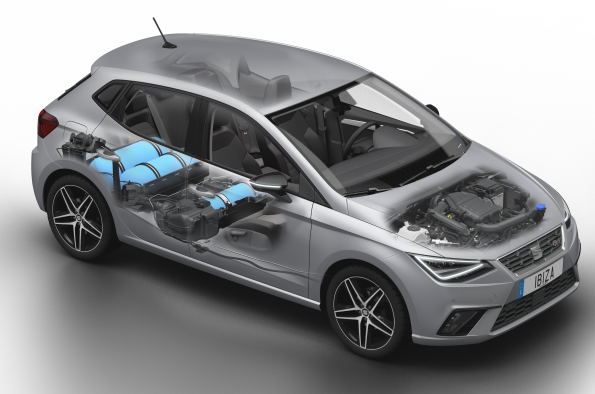 Por su parte, la opción de gas natural (GNC) también está disponible en todas las versiones de acabado y versiones ‘GO2’. Su motor 1.0 TGI de 90 CV y 160 Nm de par máximo, con caja de cambios manual de seis velocidades, aporta al SEAT Ibiza el distintivo ambiental ECO de la DGT. Alcanza una velocidad máxima de 181 km/h, acelera de 0 a 100 km en 12,4 segundos, presenta unas emisiones de CO2 desde 101 g/km, y ofrece un increíble consumo de 3,5 kg/100 km, o lo que es lo mismo, con el coste medio actual del Kg de GNC de 0,90.-€/km, recorrer 100 km sólo costará unos 3 euros.