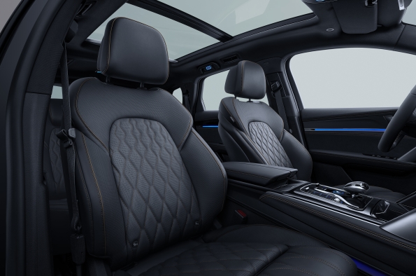 Los numerosos compartimentos portaobjetos de fácil acceso, varios puertos USB-C, una superficie de carga inalámbrica que permite cargar simultáneamente dos smartphones con hasta 50 W, el cristal acústico en el parabrisas delantero y las ventanillas o el sistema de iluminación ambiental interior con 31 colores contribuyen al ambiente premium y la experiencia relajada que se respira en el habitáculo, con bajos niveles de NVH (ruido, vibración y asperezas) y unas grandes cualidades como coche para viajar.