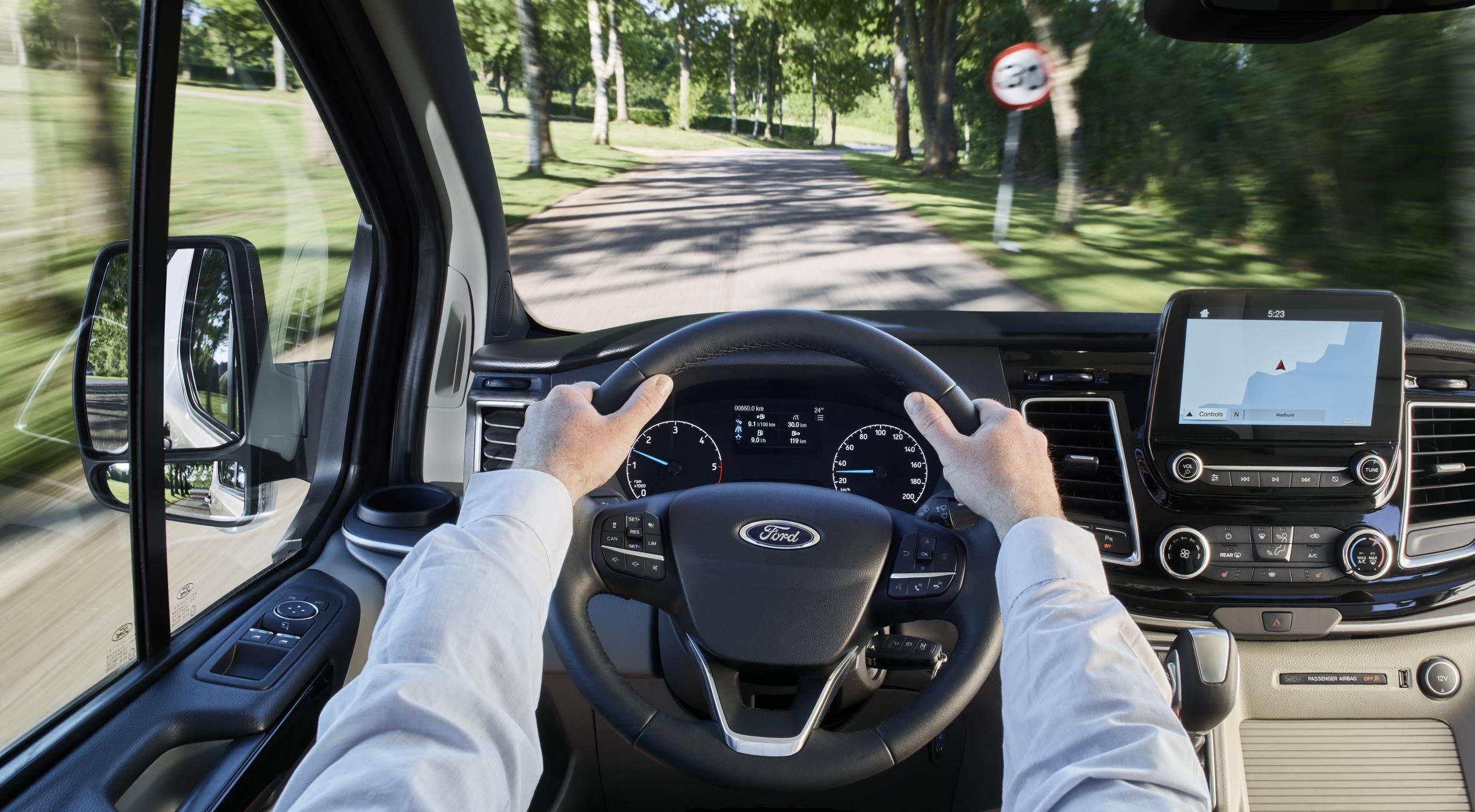 El nuevo Tourneo Custom también introduce una serie de avanzadas tecnologías de asistencia al conductor, y es el primer vehículo de su segmento en ofrecer Limitador de Velocidad Inteligente que permite el ajuste automático de la velocidad máxima del vehículo a los límites de velocidad de la vía utilizando el sistema de Reconocimiento de Señales de Tráfico para detectar las señales de límite de velocidad.