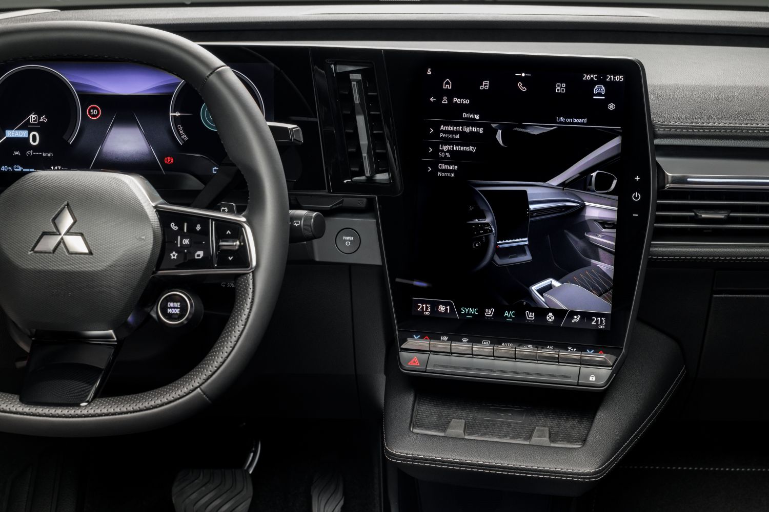 Para minimizar la fatiga se cuenta con el sistema MI-PILOT (Mitsubishi Intelligent – PILOT). Al combinar el control de crucero adaptativo (ACC) con Stop & Go y el asistente de centrado en carril (LCA), el conductor puede acceder a MI-PILOT, que adapta de forma proactiva la velocidad al contexto de la carretera, mantiene el vehículo centrado en el carril y puede detener completamente el coche.