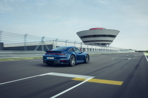 Stuttgart, 21 de julio de 2020.- Durante los últimos 45 años, el Porsche 911 Turbo ha sido la quintaesencia de los deportivos de altas prestaciones que se pueden utilizar cómodamente en el día a día. Después del lanzamiento del 911 Turbo S, ahora le llega el turno a la siguiente generación de los 911 Turbo Coupé y Cabriolet, que son aún más potentes, rápidos y exclusivos que antes. Gracias a sus motores con 580 caballos de potencia (427 kW), 40 CV (30 kW) más que sus predecesores, ambas variantes son capaces de bajar la mágica barrera de los tres segundos en la aceleración de 0 a100 km/h, con un tiempo de 2,8 segundos (0,2 menos). Además, sus 750 Nm de par máximo (+ 40 Nm), ahora sin límite de tiempo de overboost (sobrepresión), también son decisivos para lograr esos valores. Tanto la aceleración, como la potencia y el par del nuevo 911 Turbo igualan a los de la generación previa del 911 Turbo S. En cuanto a la transmisión, es la PDK de doble embrague y ocho marchas, pero con una puesta a punto específica para este modelo. La velocidad máxima se mantiene sin cambios en 320 km/h. Opciones como los packs Sports o el Lightweight Design, el chasis deportivo y el sistema de escape deportivo están disponibles por primera vez en el 911 Turbo. Así, los clientes podrán personalizar el vehículo mucho más, en función de sus gustos.