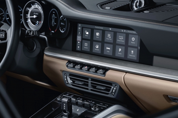 Los elementos básicos del moderno interior se corresponden con los del resto de los 911 Carrera e incluyen el Porsche Advanced Cockpit y el Direct Touch Control. La pantalla central del PCM tiene 10,9 pulgadas y, gracias a su nueva arquitectura, se maneja de forma rápida y sin distracciones. La lista de equipamiento, amplia y de gran calidad, incluye los asientos eléctricos deportivos de 14 reglajes, el pack Sport Chrono, un volante GT multifunción con levas para el cambio de marchas y un conmutador para los modos de conducción, así como el potente sistema envolvente de sonido BOSE®. También hay numerosas opciones de personalización, entre las que destacan el Porsche InnoDrive con control de crucero adaptativo, el asistente de mantenimiento de carril con reconocimiento de señales de tráfico, el asistente de visión nocturna, la visión periférica para maniobras de aparcamiento y el sistema de sonido envolvente de alta fidelidad Burmester®.