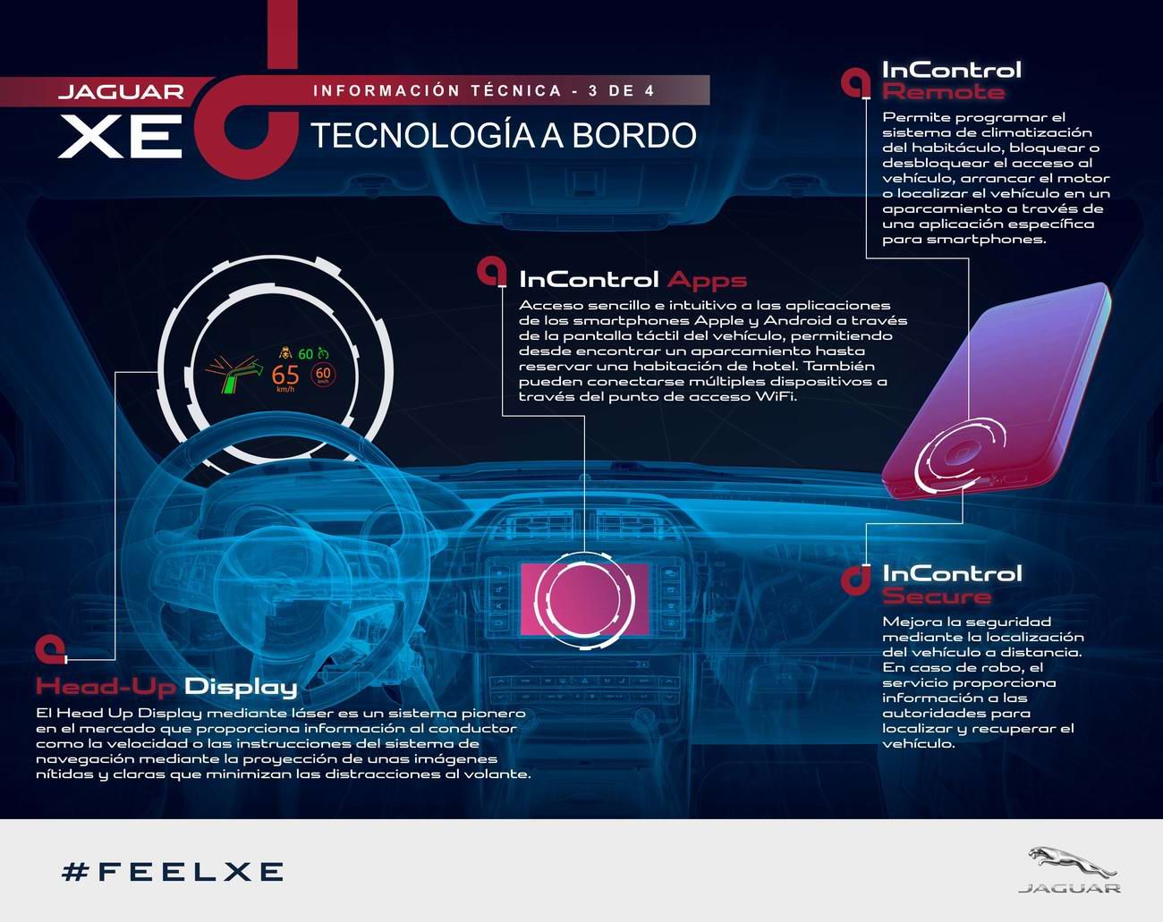 En palabras del Dr. Mike Bell, Global Connected Car Director de Jaguar, el sistema InControl ofrece “información actualizada sobre aparcamiento, conferencias telefónicas, reservas de hoteles, avisos de tráfico… Con InControl Apps es posible acceder a cualquier información con un simple toque en la pantalla. Una experiencia más sencilla que no compromete la interactividad: el nuevo XE supone un gran avance tecnológico que cualquiera querrá disfrutar.”
