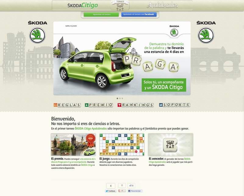 G2 A1R1 A1 P3. Combinar las letras para formar una palabra y colocarla en el lugar adecuado para obtener la máxima puntuación son las sencillas reglas para poder conseguir un viaje de cuatro días a P3 R1 A1 G2 A1 para dos personas. Esta es la mecánica del Torneo ŠKODA Citigo Apalabrados en el que todos los usuarios que se registren deberán competir entre ellos en distintas fases eliminatorias para poder llegar a la gran final.