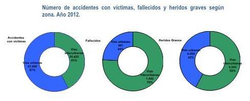 En el año 2012 el 43% (35.425) de los accidentes de tráfico con víctimas tuvieron lugar en las vías interurbanas, carreteras donde se produjeron el 76% de las víctimas mortales, 1.442, lo que supone un descenso de un 10% en el número de fallecidos en este tipo de vías respecto del año anterior y un descenso del 11% de los heridos graves. En cuanto a los heridos leves se ha producido un aumento del 1%.