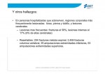 Con respecto al resto de los heridos hospitalizados el 58% presentaron fracturas, el 17% lesiones internas, el 8% contusiones y el 7% heridas. Los miembros inferiores y superiores fueron las localizaciones más frecuentes de las lesiones con el 41%.