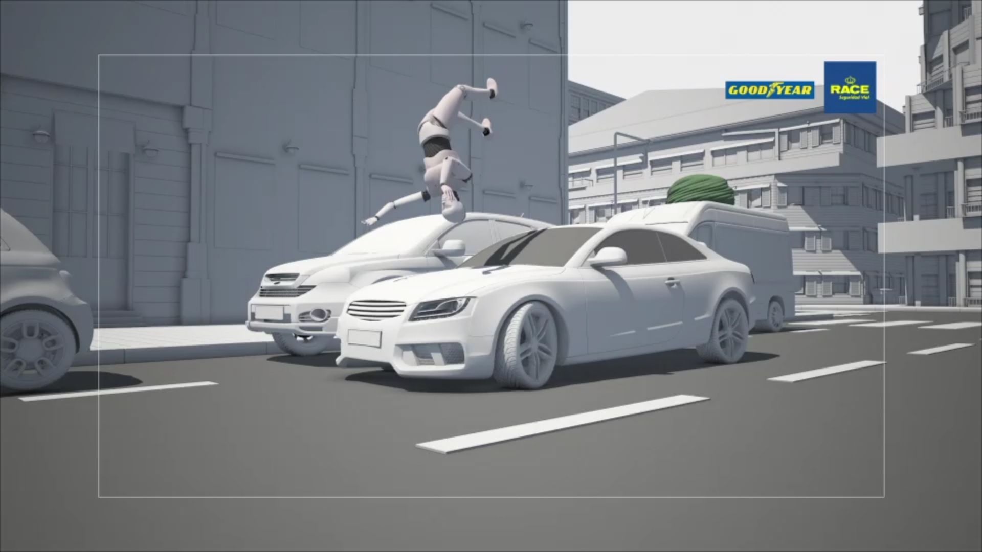 El RACE y GOODYEAR han desarrollado conjuntamente una recreación de atropello tipo en ciudad, con objeto de concienciar a la población sobre el alto nivel de lesiones que provoca este tipo de accidente y lanzar los consejos más importantes para evitarlos.