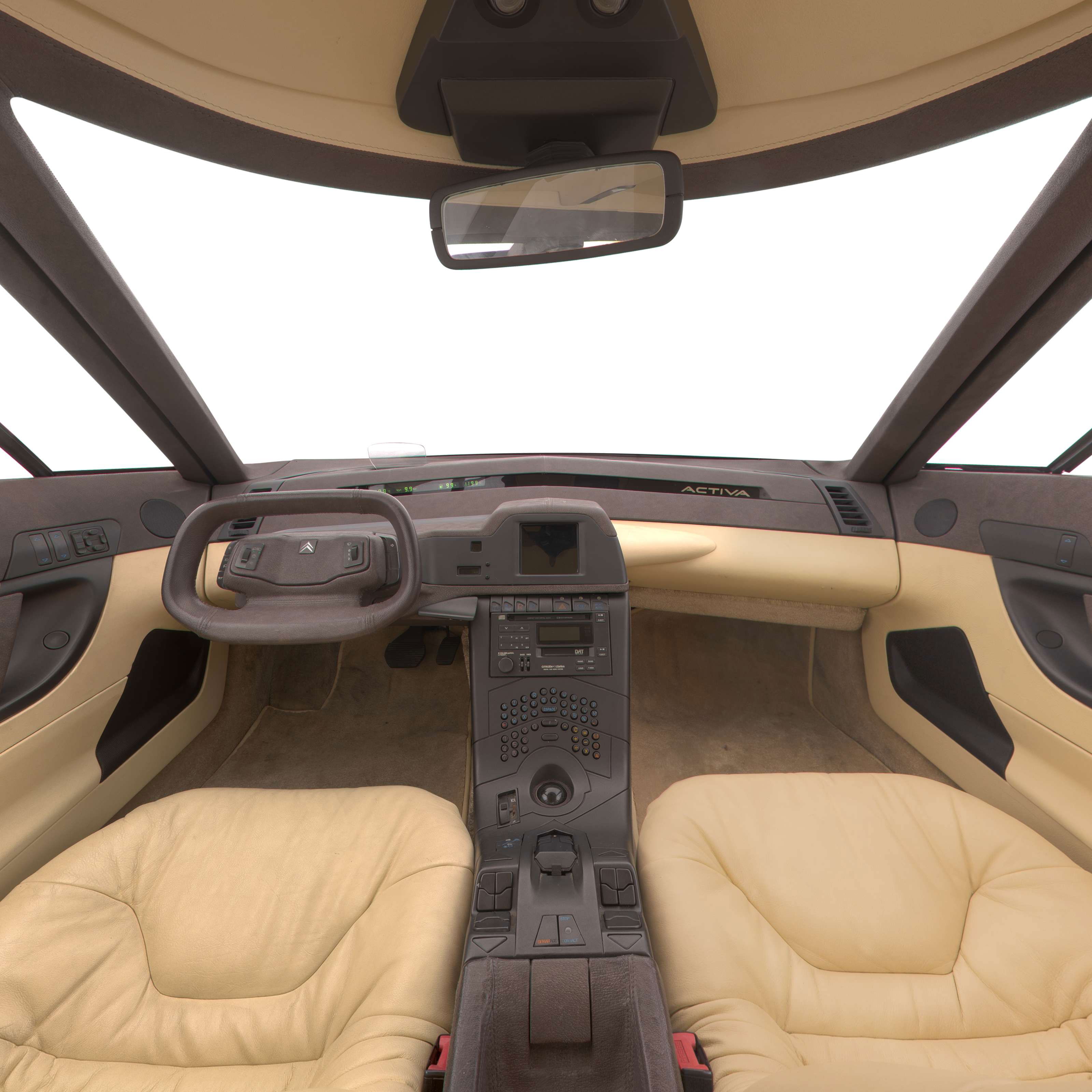 La instrumentación estaba presidida por una gran pantalla donde se proyectaban las informaciones principales del vehículo a las que se añadían, en determinadas condiciones, otros datos como la distancia a los obstáculos o las condiciones de funcionamiento del motor. Otras pantallas digitales, habituales en los CX de la época, proporcionaban informaciones como la temperatura del líquido de refrigeración, la hora o la temperatura exterior. Todos los mandos del climatizador eran digitales y temperatura y caudal estaban regulados por la centralita de “bienestar a bordo” que también controlaba las cuatro grandes puertas, con las posteriores de apertura inversa, que proporcionaban un cómodo acceso al futurista habitáculo de Activa.