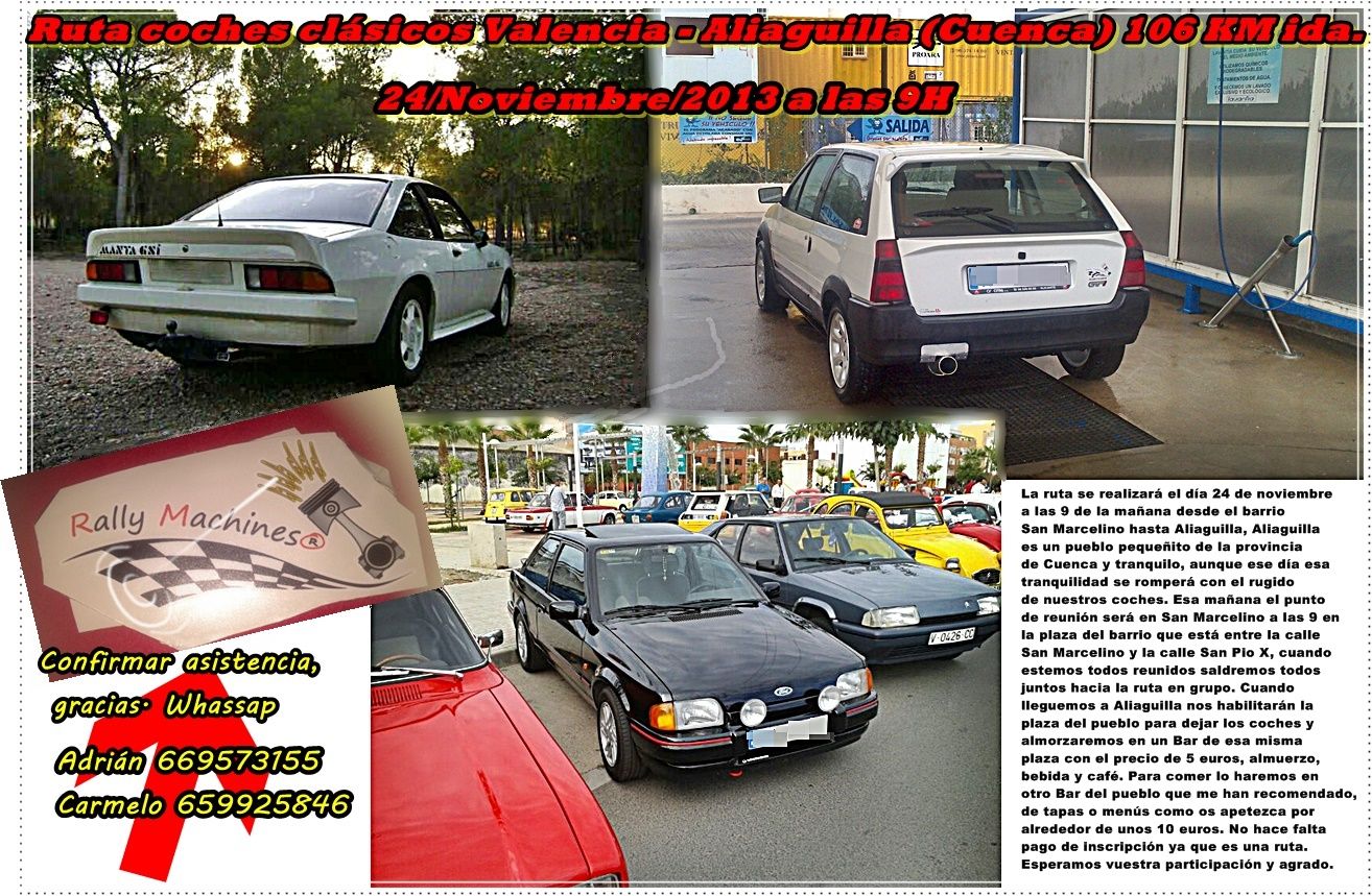 27 de octubre de 2013.- Rally Machines ha comunicado a Clásicos al Volante que el 24 de noviembre se realizará la ruta que han organizado para conocer el pueblo de Aliaguilla y sus atractivos parajes.