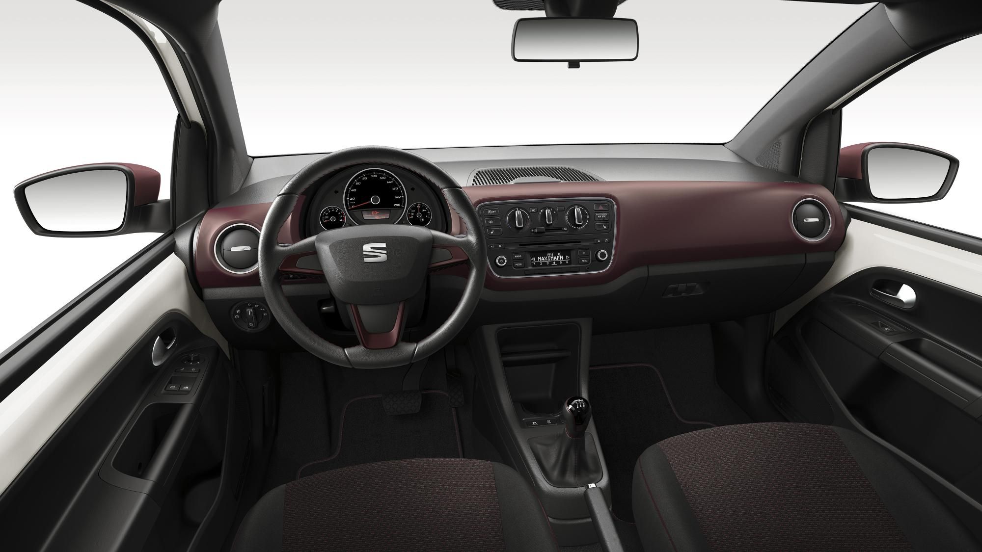 En la gama del SEAT Mii, el carácter deportivo sale especialmente reforzado en su versión FR, también de estreno. Se reconoce fácilmente por sus llantas de aleación de 16 pulgadas, sus molduras decorativas no menos exclusivas y, naturalmente, el logo FR de la parrilla. El SEAT Mii FR se desmarca claramente por su suspensión deportiva y su interior en negro brillante con matices rojos, además de por los asientos deportivos y el volante en piel con llamativas costuras en rojo.