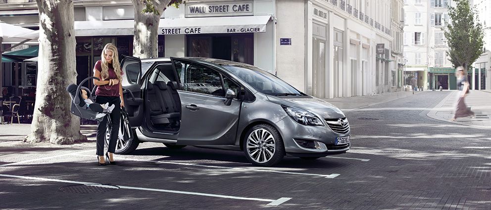 Por ejemplo, uno de los primeros problemas de los padres primerizos son los dolores de espalda. Opel Meriva ha recibido el distintivo que concede la AGR (Aktion Gesunder Ruecken e.V. – Acción para espaldas saludables), ya que es el único vehículo que tiene puertas absolutamente flexibles (FlexDoors) con un ángulo de apertura de las mismas mayor del habitual, hasta ponerse perpendiculares al coche para facilitar el acceso. Además, las puertas traseras que se abren en sentido contrario a la marcha y el techo más elevado de lo habitual, evitan cualquier movimiento que suponga retorcerse o agacharse al colocar al niño en la sillita.