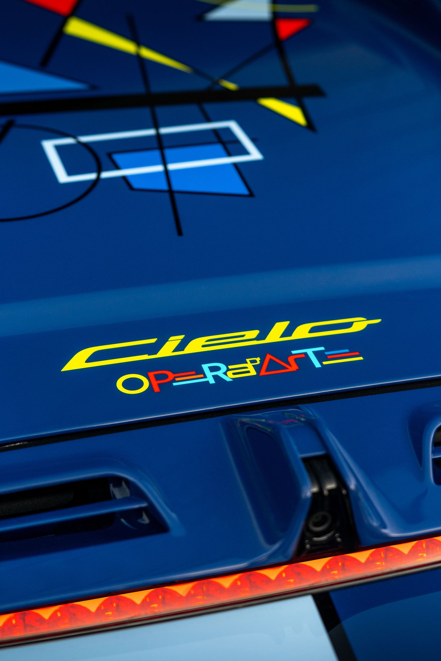 Fiel al espíritu del Programa Fuoriserie y concebido como una «pizarra blanca» para las personalidades más originales, el interior del MC20 Cielo «Opera d’Arte» combina detalles pintados a mano en la parte inferior del salpicadero con inserciones de cuero en la sección superior, creando la sensación de estar envuelto en una obra maestra verdaderamente única. El mismo cuidado artesanal y la visión abstracta continúan en el exterior: las llantas están adornadas con detalles gráficos únicos en combinaciones de colores que amplifican el impacto visual general del automóvil.
