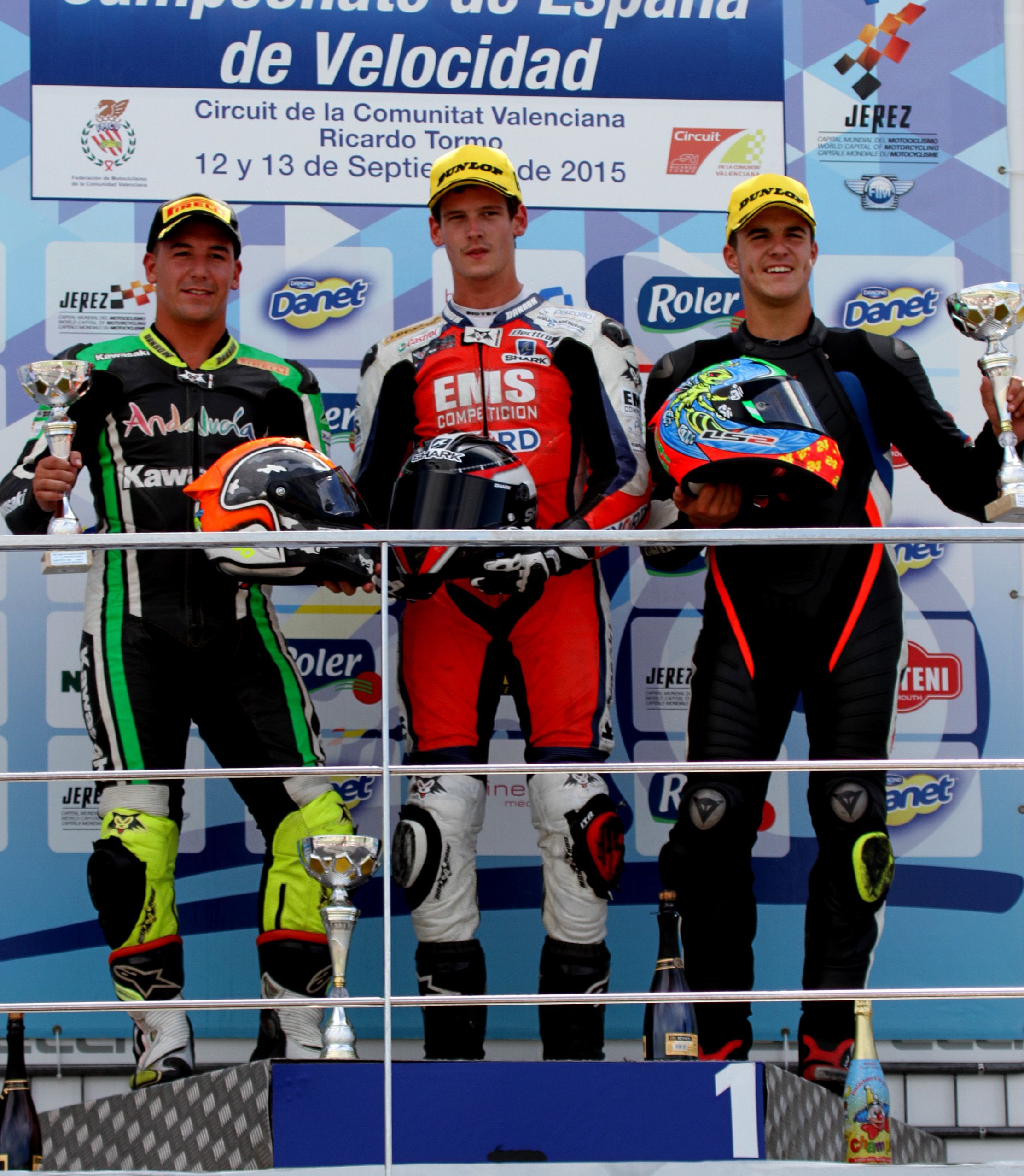 Cheste, 13 de Septiembre de 2015.– El piloto mallorquín integrado en la escudería EMS Competición con Kawasaki, que llegaba a la quinta prueba del RFME Campeonato de España de Velocidad habiendo perdido el liderato tras irse al suelo en la última cita disputada en Motorland, lo recupera de nuevo con esta victoria en el Circuito de la Comunidad Valenciana Ricardo Tormo. Después de marcar el mejor tiempo en los entrenamientos cronometrados, Ferrer partía desde la primera posición en la parrilla, liderando la carrera desde la salida hasta la bajada de la bandera a cuadros.