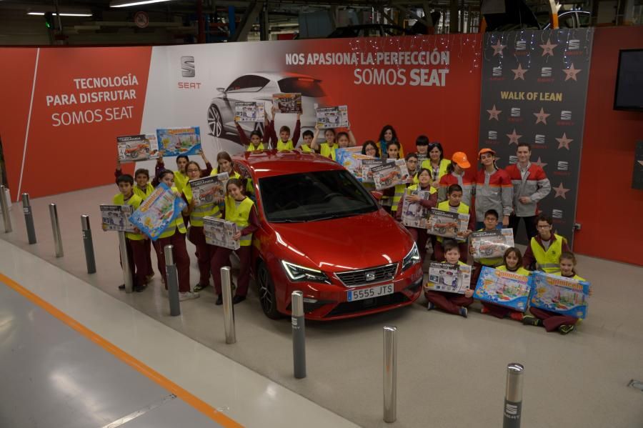 “Parece que Papá Noel ha pasado por aquí esta noche”, comentaban sorprendidos los niños cada vez que descubrían un nuevo regalo, entre pieza y pieza, de la línea de montaje hasta llegar al final del recorrido donde un SEAT León les esperaba repleto de regalos de carácter científico y tecnológico para todos.