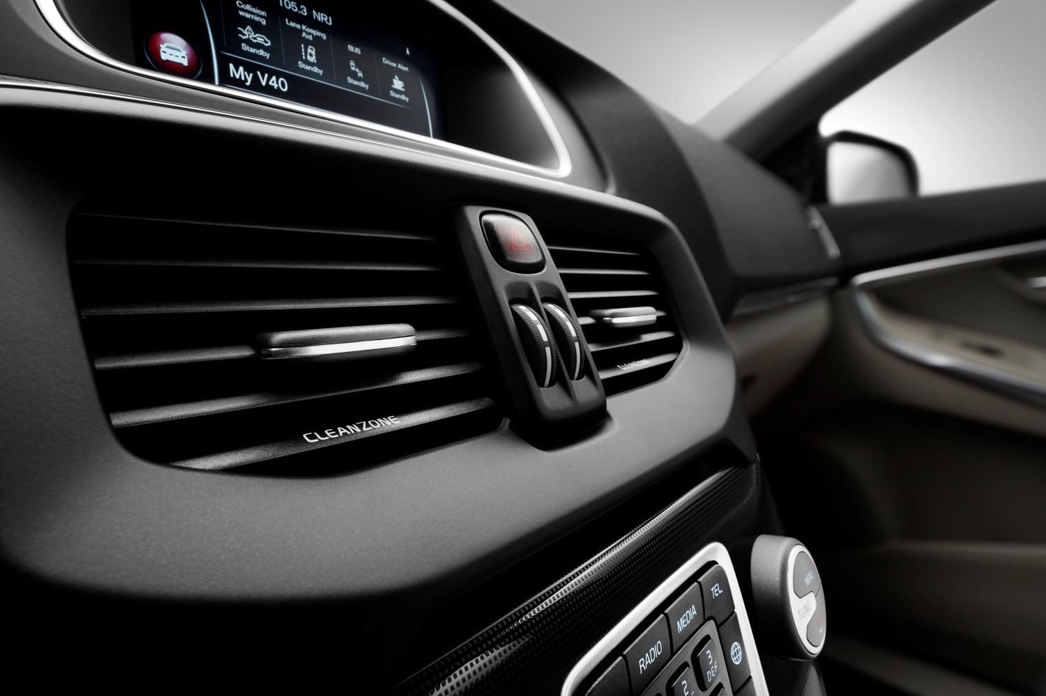 Los difusores de aire del panel de instrumentos de los modelos de las Series 60 y 40 incorporarán el logotipo CleanZone para destacar nuestro continuo liderazgo en todo lo que se refiere a la calidad del aire interior. También los modelos de la Serie 90 llevarán un logotipo en la pantalla central (fotografía superior).