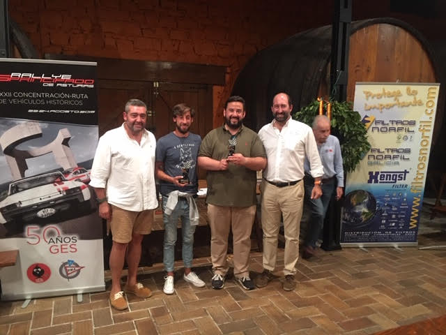 El recorrido terminó tras atravesar las afueras de Gijón y llevó a los participantes hasta casi las puertas del “Llagar”, donde les recibió un arco de llegada para entrar a la bien merecida cena-espicha en la que tuvo lugar la entrega de premios. Allí contaron con la presencia del patrocinador, Caja Rural, así como el secretario de la FEVA D. Rafael Fernández-Cosín, responsable de los eventos de regularidad de FEVA, que entregó los galardones a los vencedores del Rallye Principado de Asturias y al vencedor del Rallye FEVA. Los tres primeros clasificados tanto del Rallye como de la LXXXII Concentración recibieron no solo un trofeo sino también un Magnum de Sidra El Gaitero, que en un gran evento como este no podía faltar.